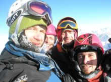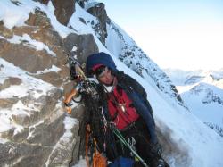 Moving became more difficult, altitude got closer to the point 4800. There was ice, sometimes pure, sometimes covered with snow, sometimes changed with rocks. Ice was very solid and if it was not covered with snow it was a real problem to twist even good Grivell ice screw. Crampons and choppers got into the ice with difficulties. But at the end we reached the last ice wall, the last snow edge and that was all, I came to the apical edge. After short rest I received my colleagues. We hammered in the slope snow anchor, left our rucksacks on it and, following the steps of three-day preion of our friends from Samara and Sankt-Petersburg, having ascended to Gestola along the edge via the summit 4310, climbed to the top.