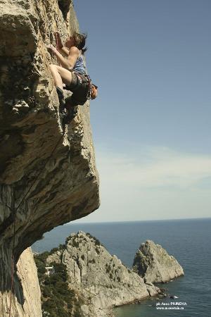 Waking up at 6 oclock in the morning, thoughts about food, Misha Pekarev, who shouts: " Wash up your dishes!", thoughts about food, long three minutes long way along the beach to the rocks, there have been no people yet, two hours later first people on the rock, hot, thoughts about food, thoughts about home, about snow, about wonderful Russian frosts, routes of 8 grade of difficulty with long distance between holds, sand that is everywhere in the clothes, in the bag, in the rope, in slippers, in the bed, thoughts about home.