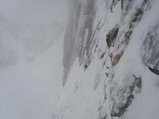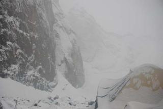 Since the length o the route and total uncertainty with the weather, we decided to work in any weather. An additional fact was the information about the competing team of Korea who also planned to ascend to the SW peak of Mahindra and set up acclimatizing camps. As a result, the team worked every day, even in hard snow. No one from the team hasn't ever worked on route of this grade in such weather.