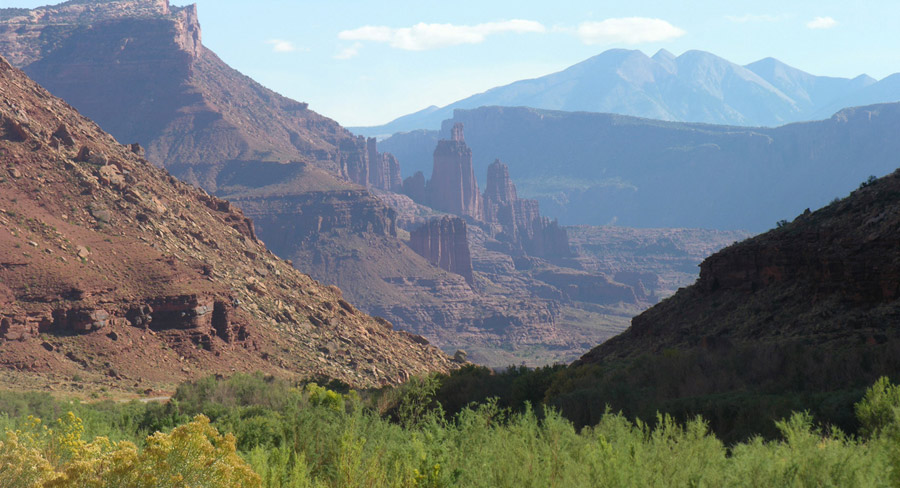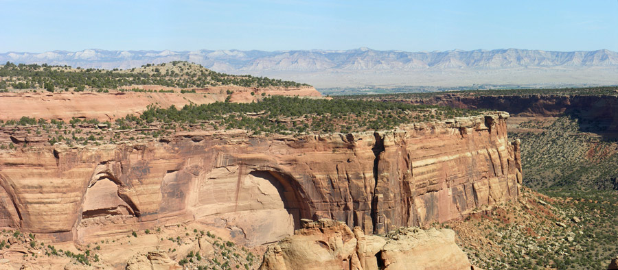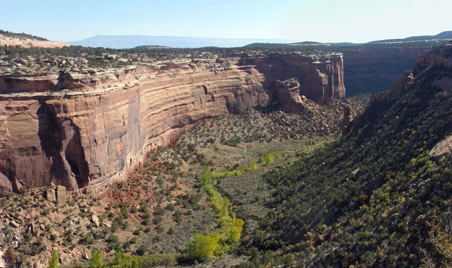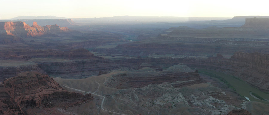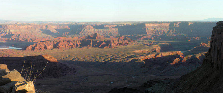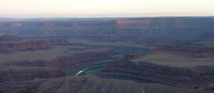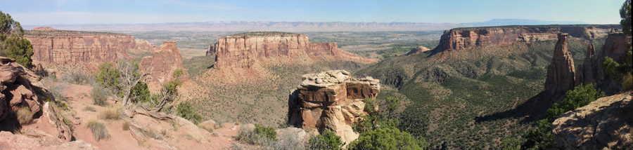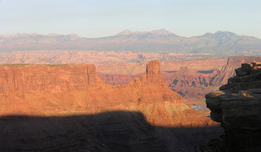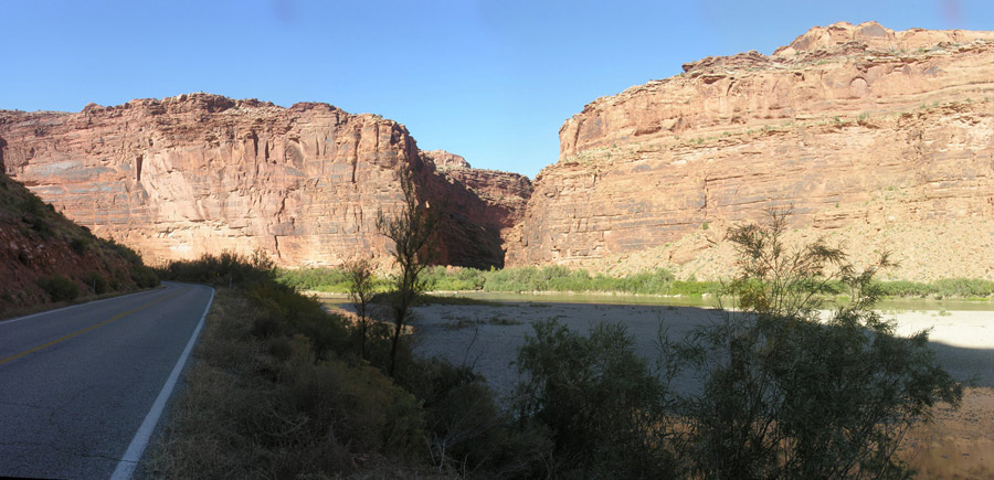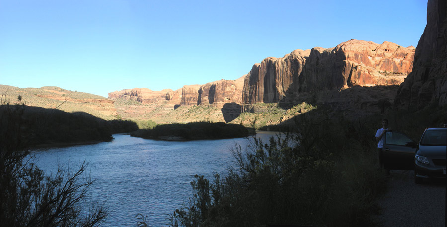 Второй день нашего автопробега по дикому Западу был короче по километражу, но гуще на события. Он включал утреннее знакомство с парком Национальный памятник (Colorado National Monument), поездку вдоль реки Колорадо по видовой трассе US-128 и проводы солнца на смотровой площадке Dead Horse Point, что у северной оконечности громадного (в несколько площадей Москвы) скального парка Canyonlands.