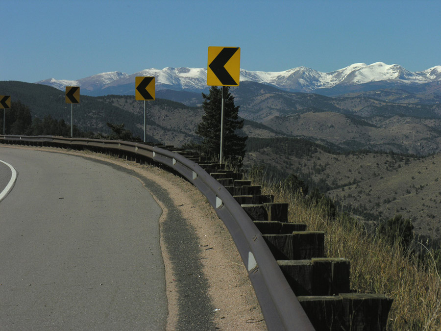 Из Денвера через Скалистые горы ведет знаменитая трасса I-70 (I = Interstate – высший ранг американских автомагистралей). Знаменита она своими насыщенными природными видами и отменным качеством. Дорога пересекает горы по дну узкого ущелья вдоль культовой реки Колорадо (которая здесь только начинается и уже потом прорезает серию каньонов, в их числе Большой каньон, на своем долгом трудовом пути через Юту и Аризону к Калифорнийскому заливу в Мексике). Полосы прямого и встречного направлений магистрали не только разделены на всем протяжении, но – на наиболее живописном участке каньона Гленвуд (Glennwood Canyon) – еще проложены на разных этажах.