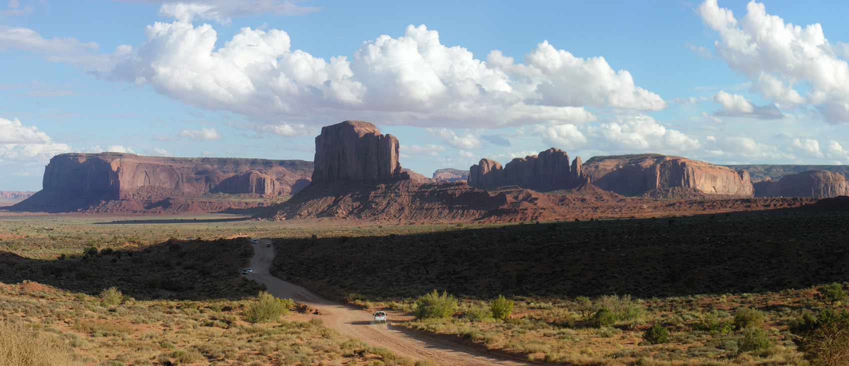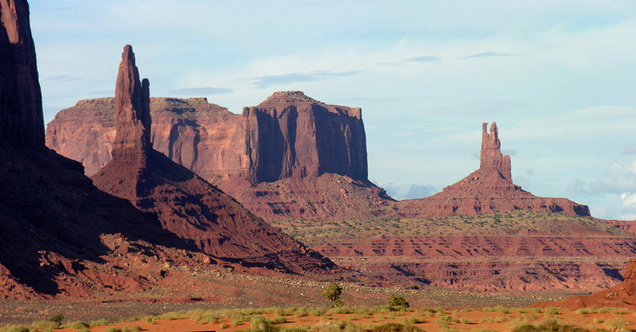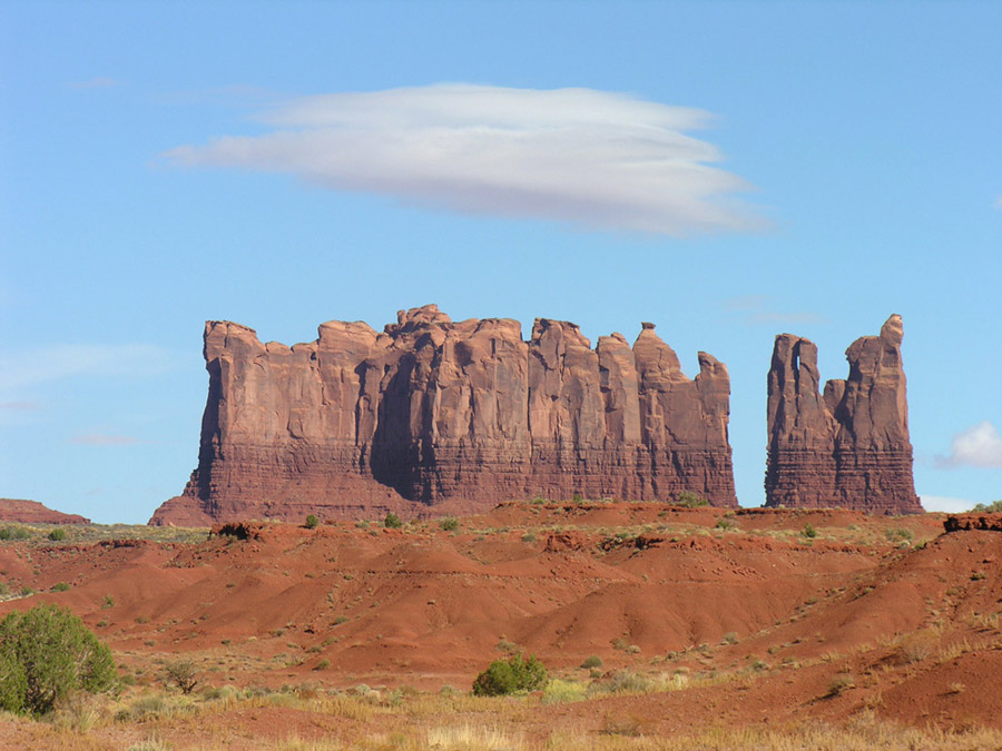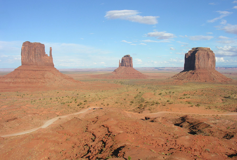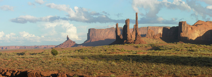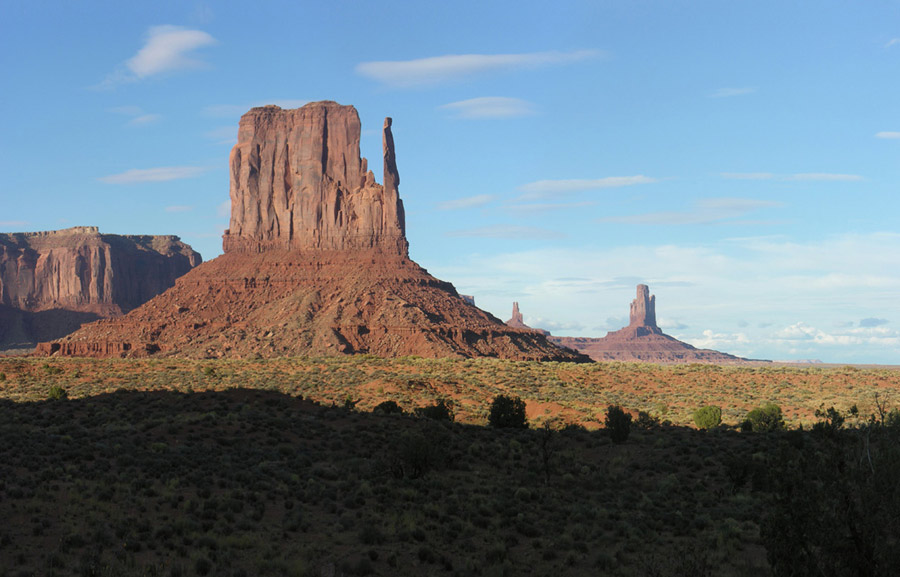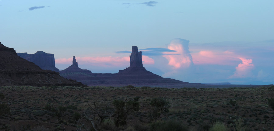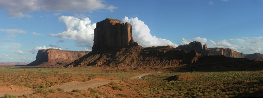 В пятом часу, немного передохнув, мы направились в национальный парк Долина памятников (Monument Valley). Катались по нему весь вечер, до полных сумерек. Благодаря сети грунтовых, в меру пыльных дорог, здесь есть где с интересом и живостью поездить и, безусловно, есть что посмотреть. С торжеством взмывающие из плоской рыжизны песков облитые солнцем скальные башни смотрятся совершенно нереально, а в синеющих красках заката это вообще улетная мистика.