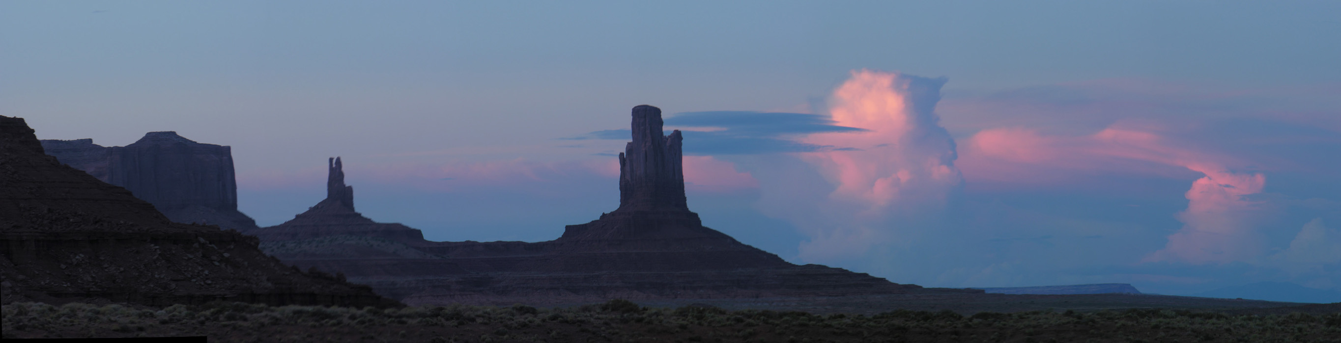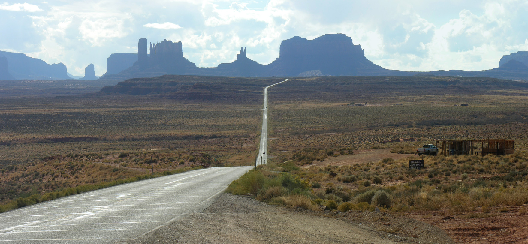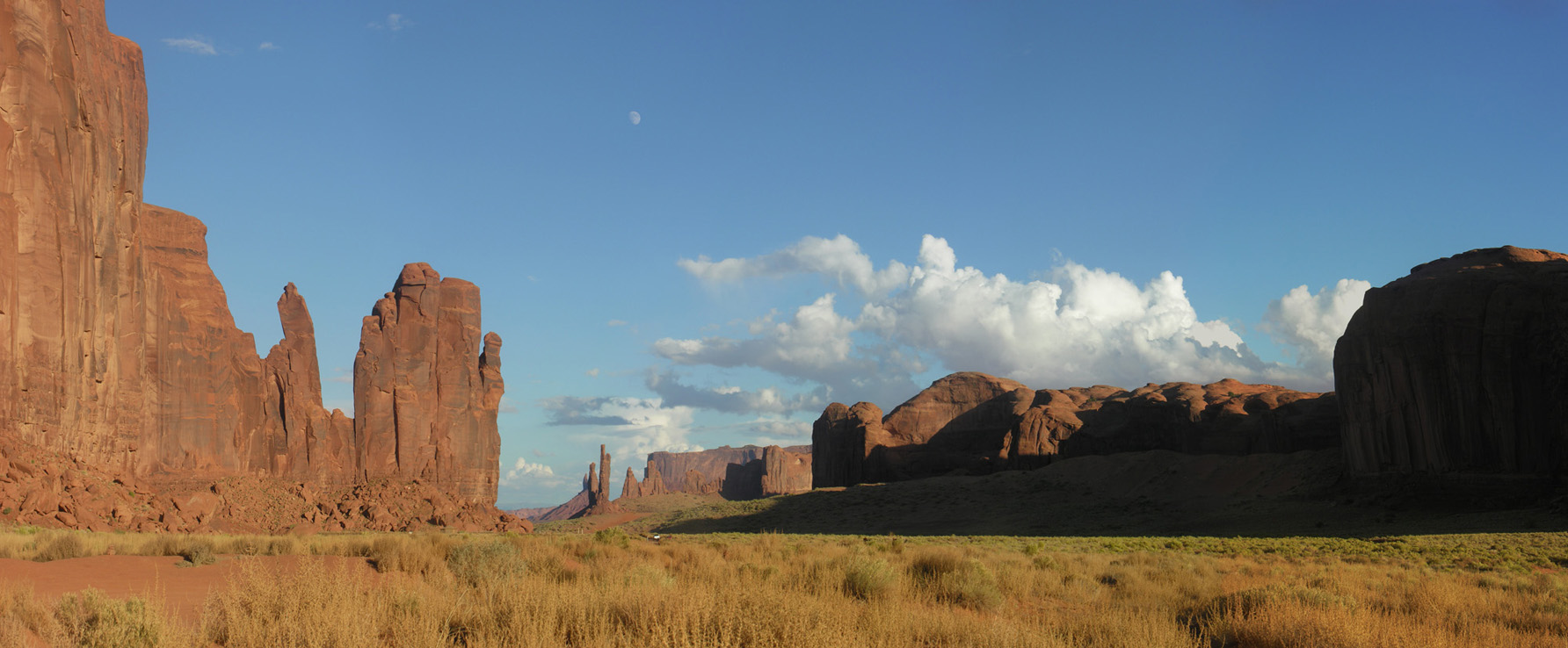 В пятом часу, немного передохнув, мы направились в национальный парк Долина памятников (Monument Valley). Катались по нему весь вечер, до полных сумерек. Благодаря сети грунтовых, в меру пыльных дорог, здесь есть где с интересом и живостью поездить и, безусловно, есть что посмотреть. С торжеством взмывающие из плоской рыжизны песков облитые солнцем скальные башни смотрятся совершенно нереально, а в синеющих красках заката это вообще улетная мистика.