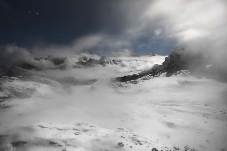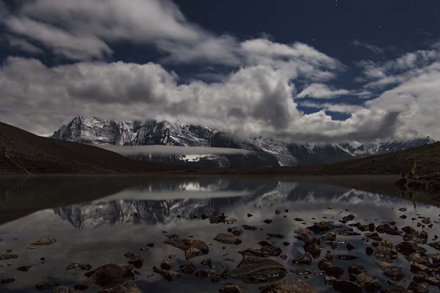 Точка съёмки рядом с моей стоянкой под перевалом Конгма Ла, высота около 5350 метров. Скажу честно, этой ночью поспать не получилось вовсе, из палатки я вышел снимать когда не было ещё и полуночи, а обратно залез в пятом часу утра.