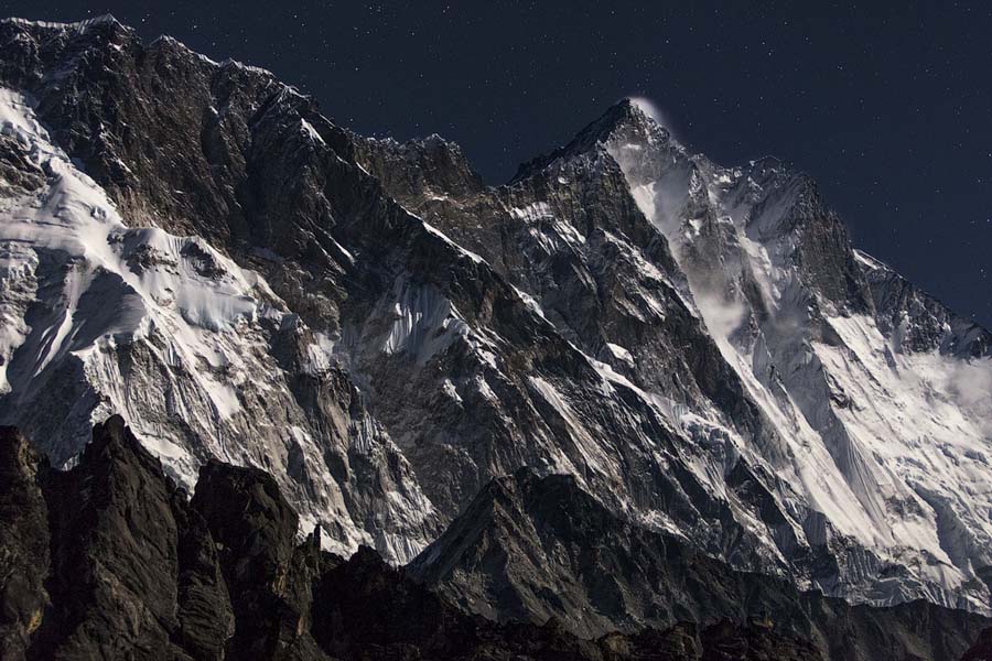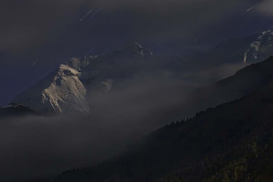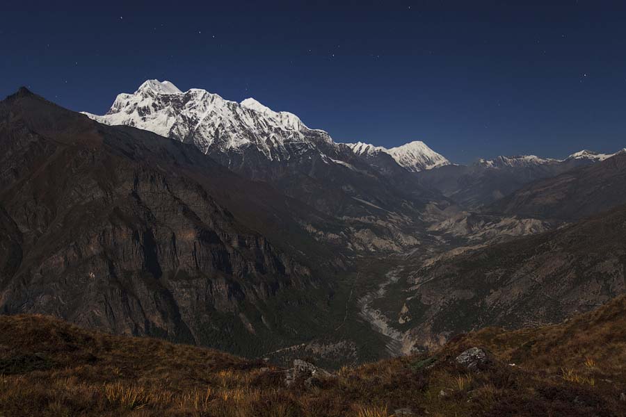 Снимал из базового лагеря пика Писанг практически при полной луне.
