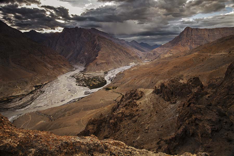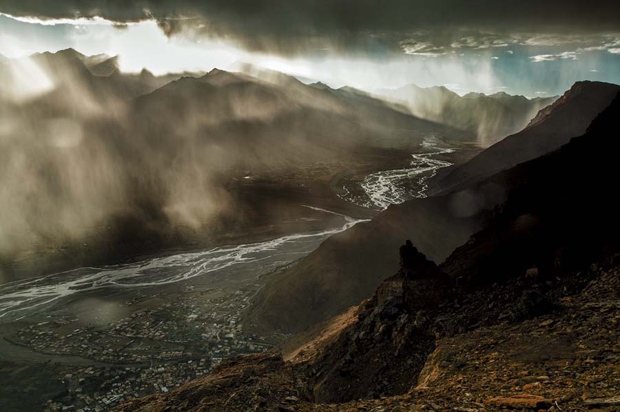 Действие происходило в долине Спити (север Индии, рядом с границей Тибета), я намылился снимать деревню Комик, выбрал точку съёмки, приготовился, но подходящего света над деревней не было. Зато оглянувшись назад и посмотрев, что происходит непосредственно над долиной, стало понятно, что надо передислоцироваться. Глядя как разворачиваются события, я понял, что всё может закончится очень быстро и я могу попросту не успеть, так как от того места где я был, до края долины, было порядка 2 км, решил, что надо бежать:)) Высота тут примерно около 4400 метров и бегать на такой высоте не очень легко, но ничего не оставалось, уж очень всё выглядело драматично.
