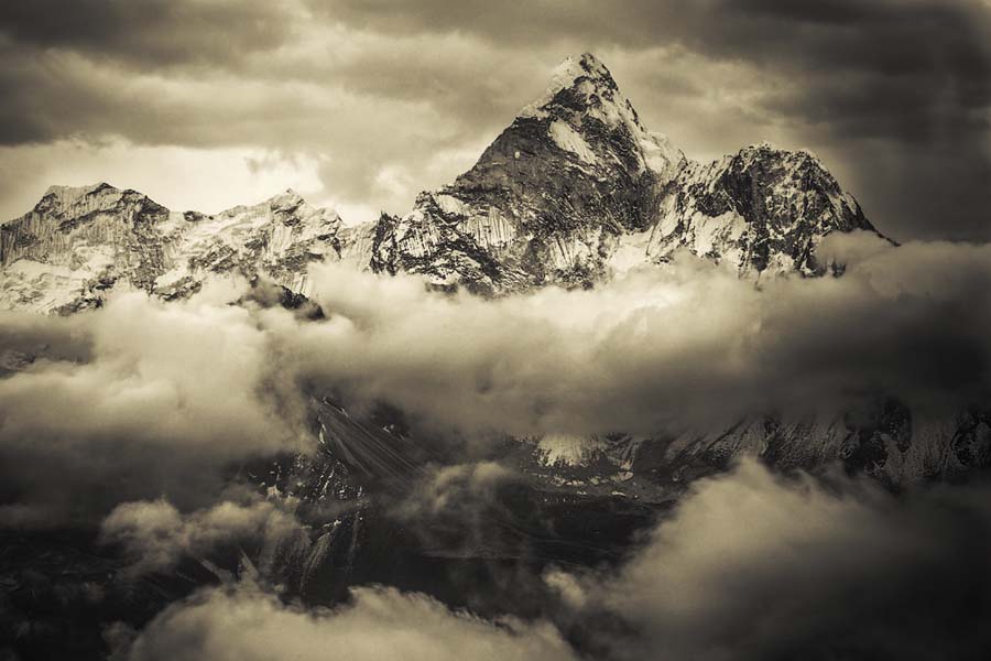 Утренняя съёмка с поинта над деревней Госайкунд, высота точки съёмки около 4600 м.