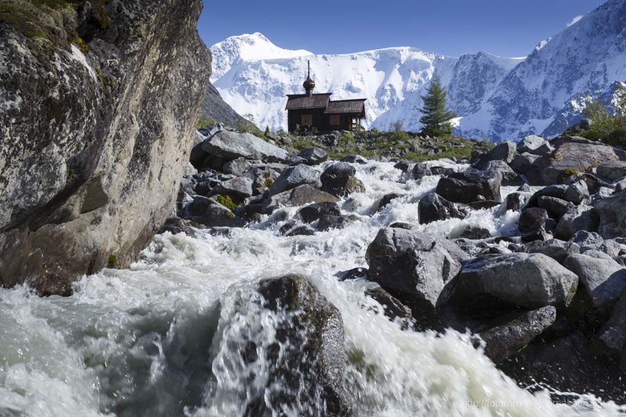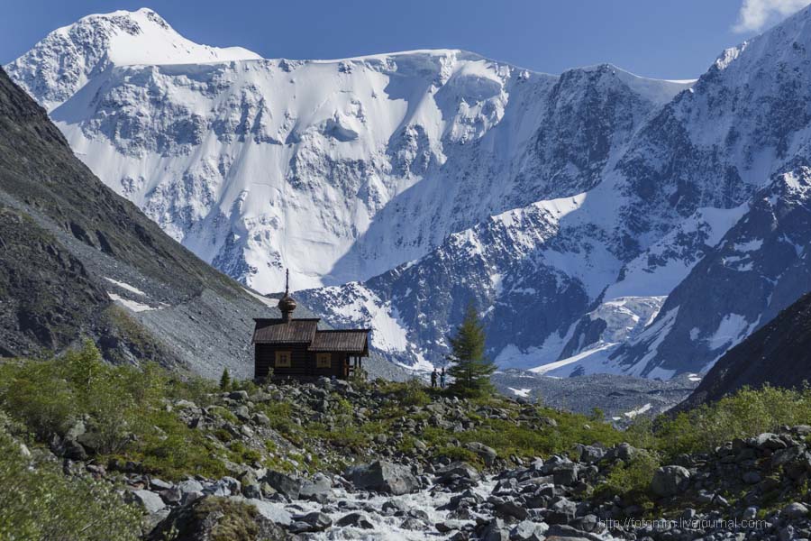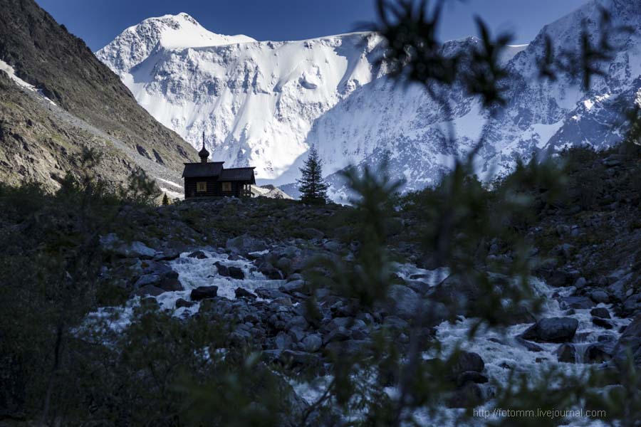 Часовня Архангела Михаила. Часовня находится у подножия Белухи и построена в память о погибших при восхождении на вершину альпинистах...