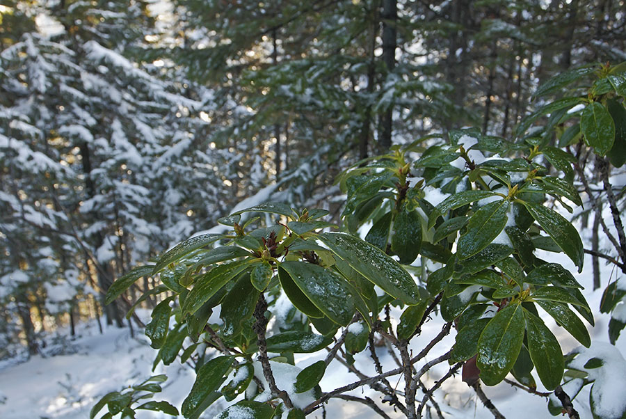 Вечнозелёный рододендрон золотистый вскоре скроется от морозов под толстым слоем снега