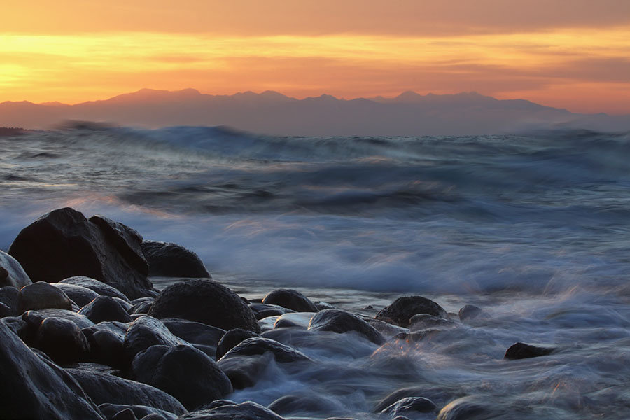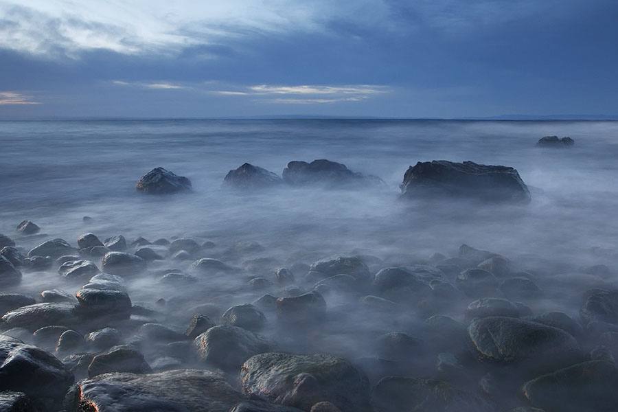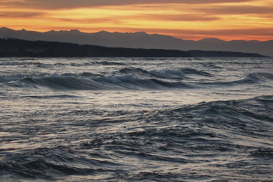 На Байкале бушевал шторм. Предо мной расстилалось грандиозное и завораживающее зрелище. Тяжёлые волны, вспениваясь белыми бурунами в полосе прибоя, накатывали одна за другой, с грохотом разбиваясь о камни. Свежий, пронизывающий ветер, не уступая по силе волнам, украшал их гребни белым шлейфом мириадов сорванных капель.