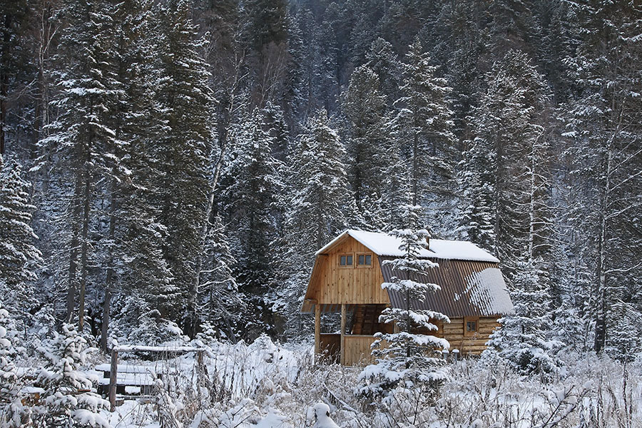 Ярким жёлтым фонариком свежеошкуренных брёвен среди строгих очертаний тайги светится новая избушка. Весёлая, нарядная, просторная, но довольно прохладная, не чета старенькому зимовью, приютившемуся на той же полянке, не настолько праздничному, но тёплому и уютному.
