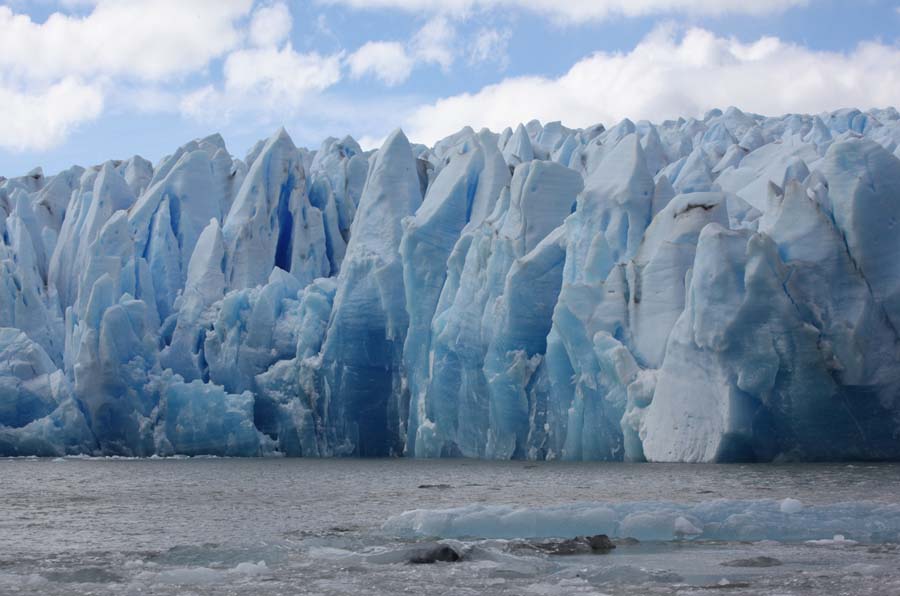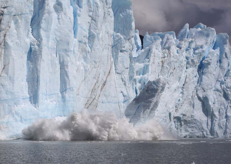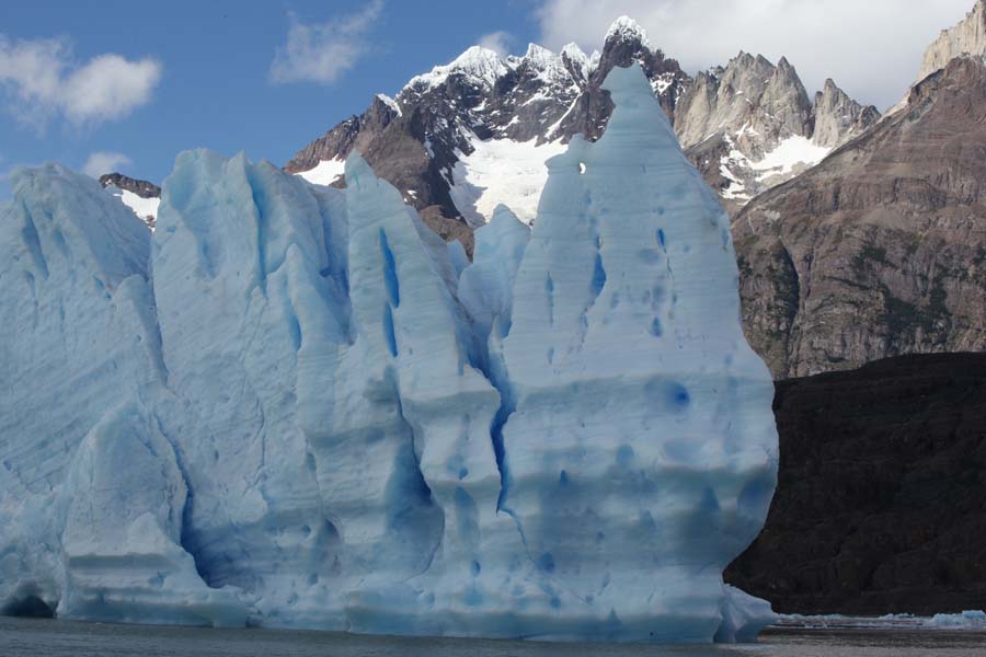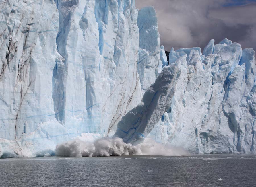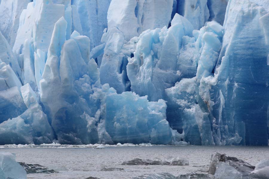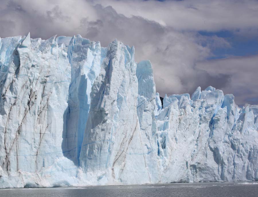 Perito Moreno – наиболее мощный и внушительный среди ледников парка, в его устье плотные ряды ледяных зубьев взмывают вверх на 40 метров! (На 2-м и 3-м снимках видно, как сильно разнятся по высоте двухэтажное судно и ледниковая стена.) К передней стене ледника ходит экскурсионный кораблик. Но ближе чем на 100-150 метров он не подходит, потому что время от времени, примерно раз в полчаса, происходит крушение и обвал какого-нибудь исполинского 40-метрового ледяного зуба. Это событие великого местного масштаба. Картина эпическая. Нет ни страха, ни ужаса, ни драматизма – есть восторг и восхищение.