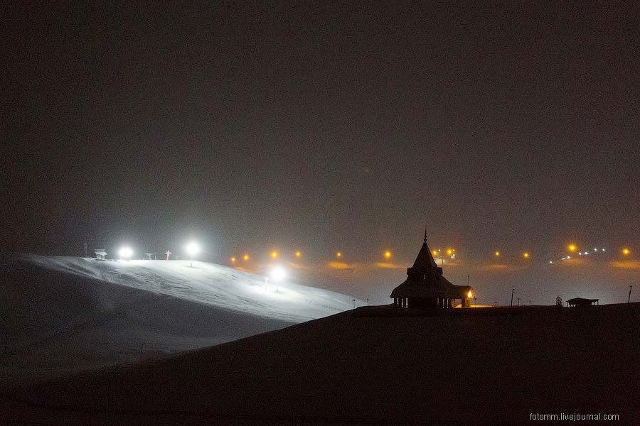А на переднем плане всевозможные учебные горки с прокатом, маленькими бугельными подъемниками. Здесь в основном приезжие индийцы, которые в жизни никогда не видели снега и просто не умеют по нему ходить - все время падают.