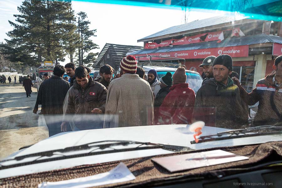 По пути несколько раз нас останавливала толпа и местные представители что то выясняли с водителем.