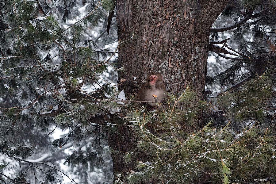 Не смотря на довольно суровую здесь зиму, обезьянки отлично себя чувствуют.