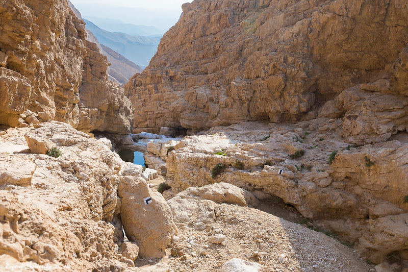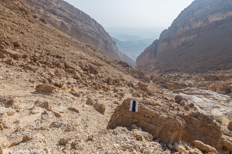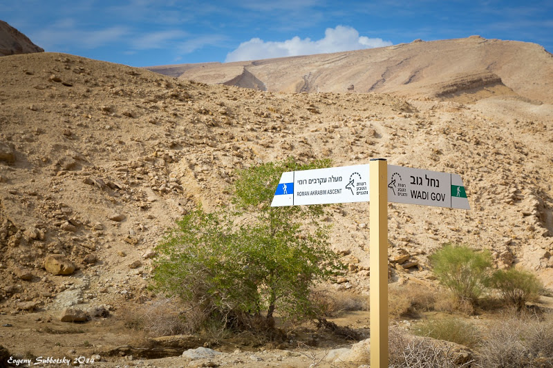 Разметка у входа в ущелье Гов и начала Римской Тропы Акрабим: