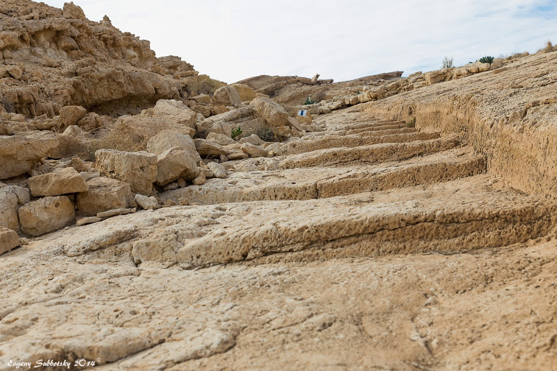 После спуска в долину реки Цин узкая тропа превращается в довольно ухоженную грунтовку по которой около часа пути (5км.) до трассы 227 и начала древнего "Римского Подъёма Акрабим".