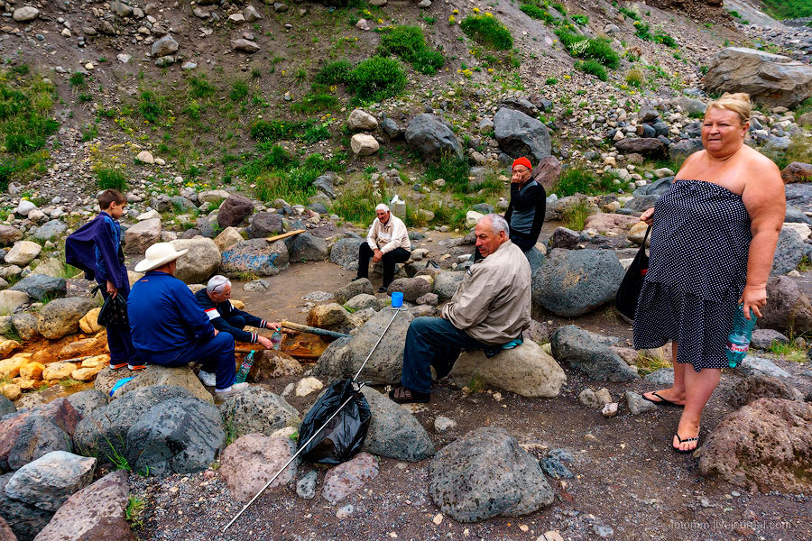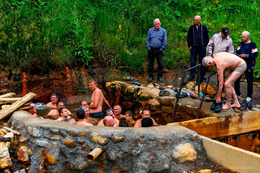 Источник представляет собой ванну 2*3 метра и в ней по очереди, как селедки в бочке, сидят люди. Нарзан полезен как внутрь, так и в наружном применении. Мы не рискнули искупаться, пока только внутрь. Настоящая минералка!