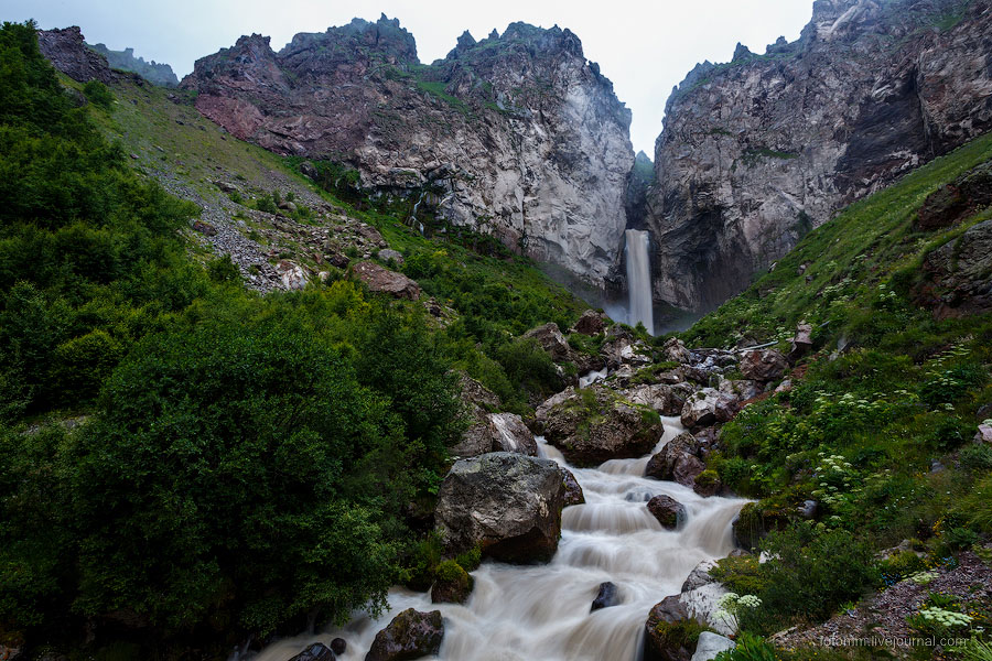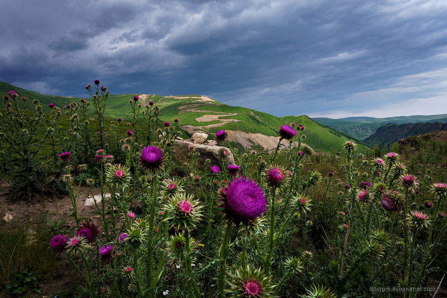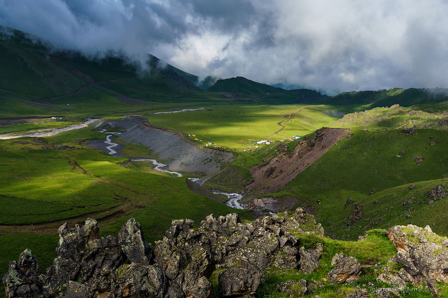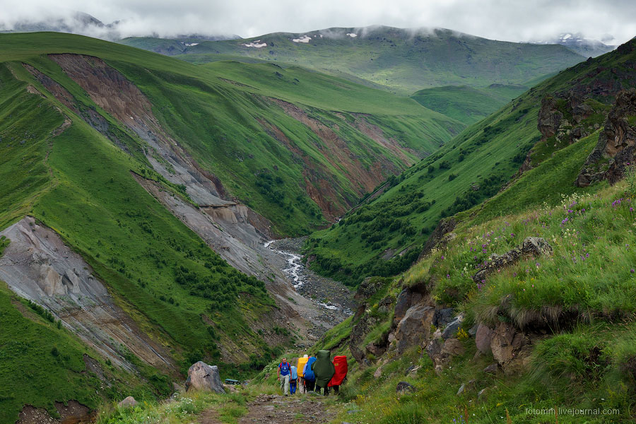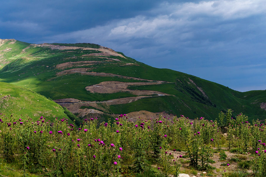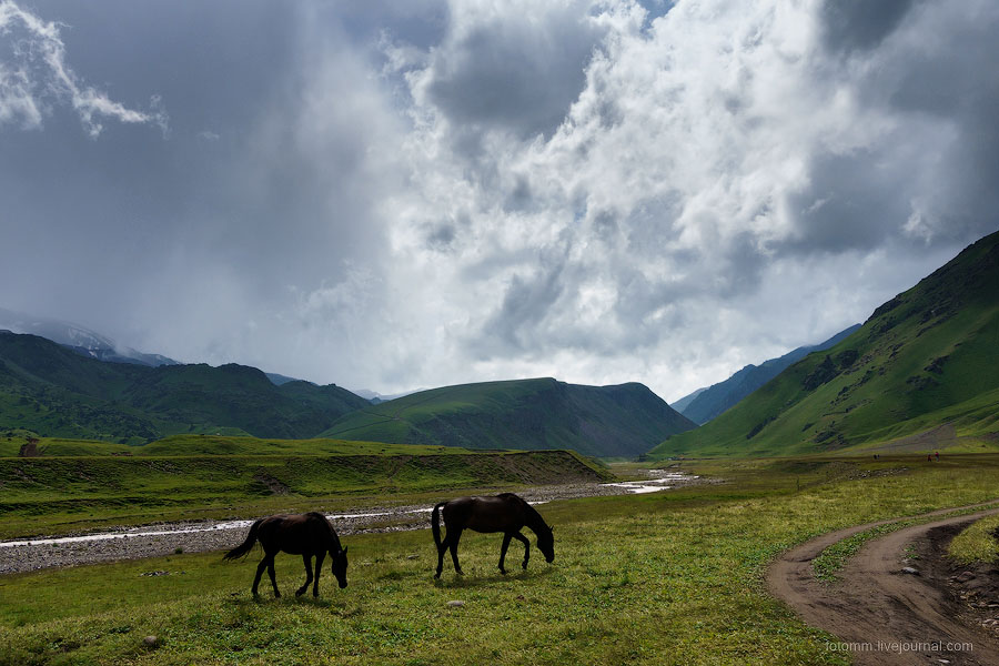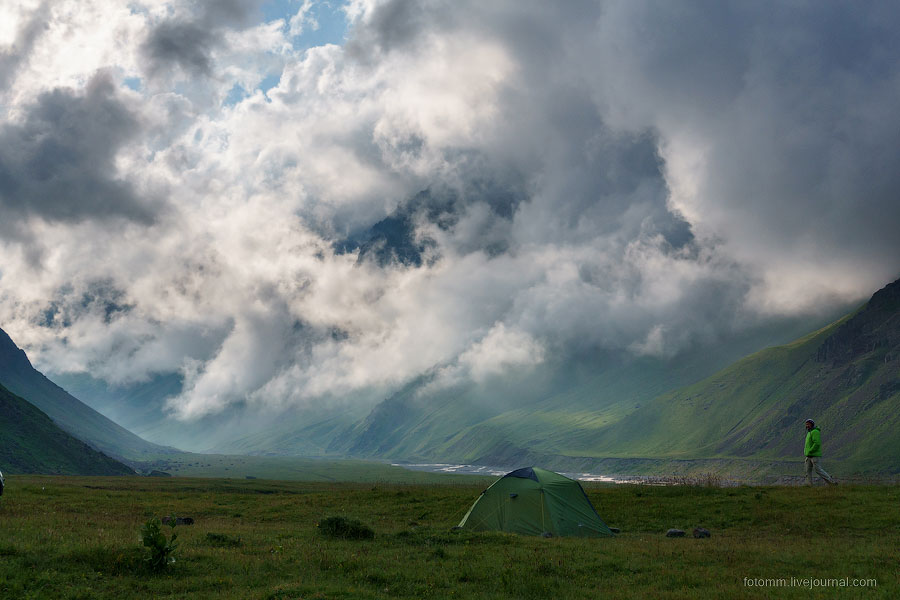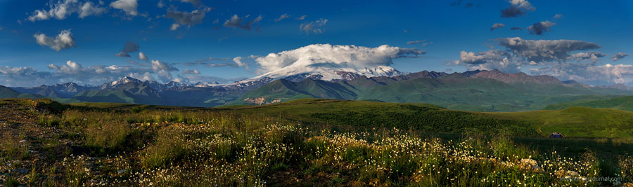 Просыпаемся в палатке с видом на снежные вершины, бежим от грозы, едем с великами на тракторе, любуемся чертополохом, сусликами и водопадом, знакомимся с черкесами, и наконец - достигаем альплагеря у подножия Эльбруса!