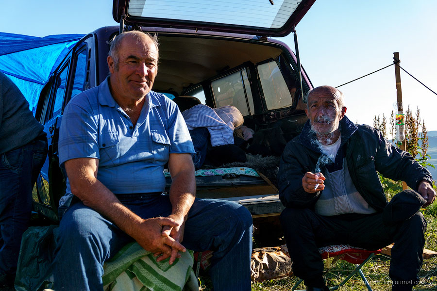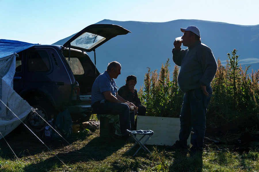 Утром познакомились с соседями - тремя черкесами, их машина и палатка стояли рядом с нашей.