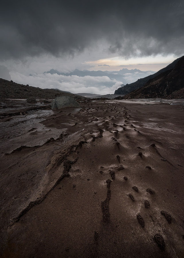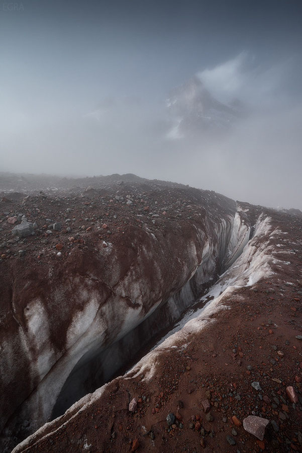 Спускаться еще куда ни шло, а подниматься - испытание: одышка, головокружение, слабость. Все покрыто каким-то буро-кофейным пеплом, ходить здесь боязно - не понятно, куда можно наступить, а куда не стоило бы. Кругом сплошная опасность: трещины, провалы, обвалы...