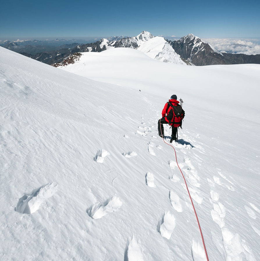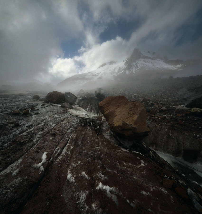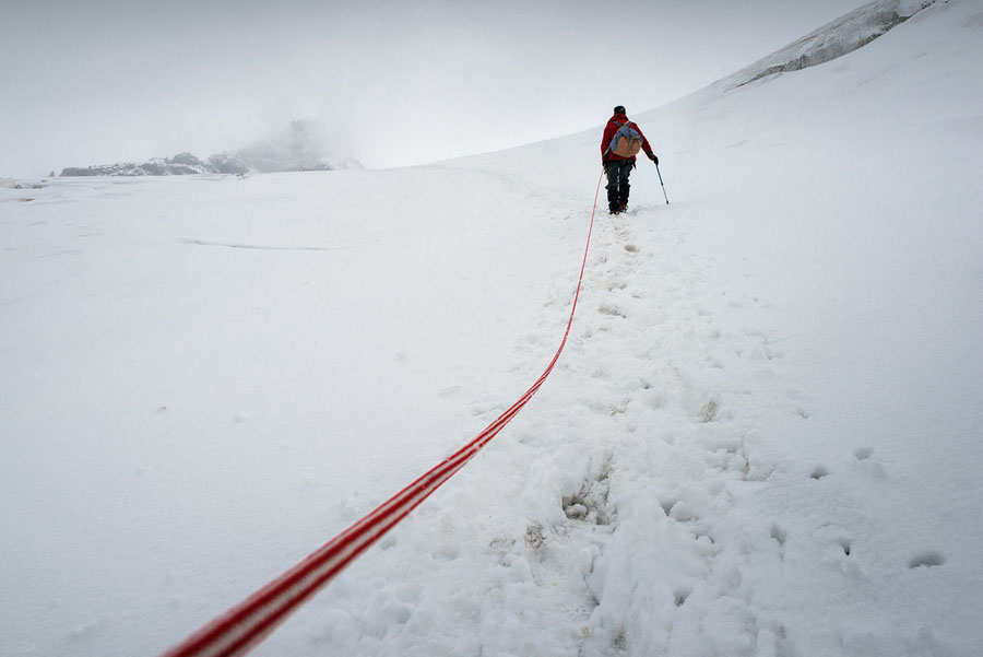 Фотоаппарат болтается на моей шее до самой вершины, без единого щелчка, смолкнув в самом начале марш-броска. Совершенно не до него. Тело действует согласно глубокому пониманию о сохранении энергии: каждое движение на чаше весов. Только самое необходимое: пульс, дыхание, шаги. Даже смотреть по сторонам нет ни сил, ни желания. Фокус всего внимания сосредоточен лишь на одной вещи - веревка. Она - прямая и единственная связь с настоящим. С ней все просто и понятно: натягивается - надо передвигать ногами, провисла - пора остановиться. И стук сердца еще, отчетливо его помню - он как маятник. В остальном - плавающее головокружение и одышка.