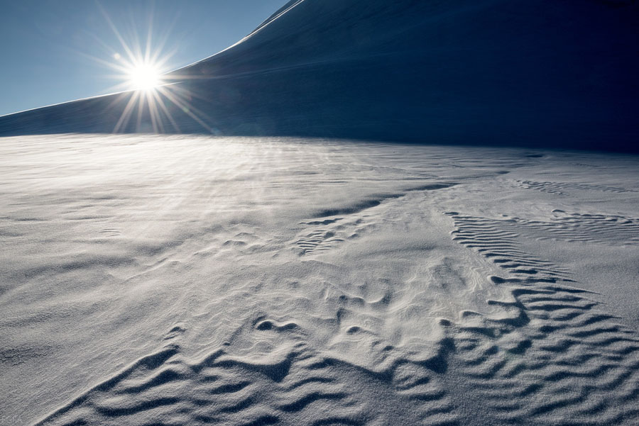 Не стану таить, где-то здесь моя эйфория стала быстро выветриваться. И с каждой минутой, с каждым шагом во мне будет проясняться, что вся та романтика, которую я себе представлял в подобных случаях - миф. Да, безусловно, все, что заходит за границы привычного, обычного, а также среднестатистических человеческих возможностей, неволей вызывает Восхищение. Но когда ты сам оказался лицом к лицу с этой жёсткой действительностью, когда вдруг нет сил двигаться, а без движения тут же замерзаешь, когда ты почти не дышишь, когда еле ползешь, и теряешь... теряешь смысл всего этого занятия - его нещадно заметает как следы за спиной. Вот уж где напрочь отшибает почти все чувства и ощущения. За ними наблюдаешь как со стороны, через мутное пуленепробиваемое стекло. И время: то ли растянулось как жвачка, то ли замерло... или замёрзло.