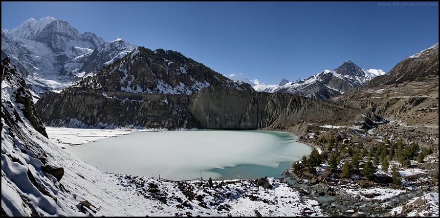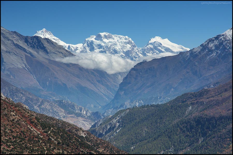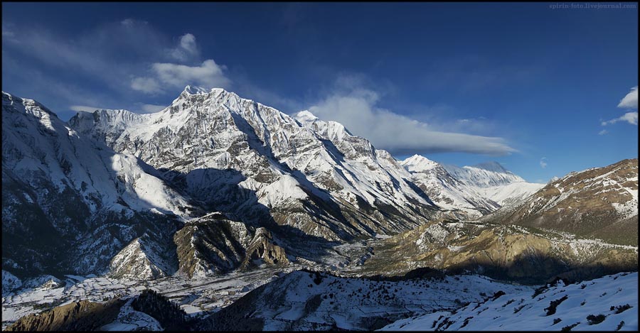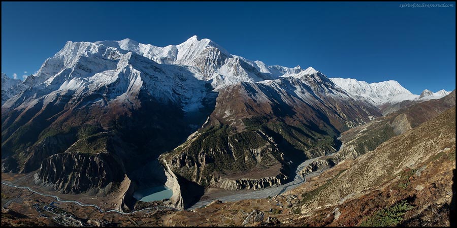 Долина реки Марсьянгди, семитысячники Аннапурна 3, Гангапурна и Тиличо (все то же самое мы увидим с перевала Канг в первой части маршрута, только с гораздо большей высоты и в более выгодном ракурсе):