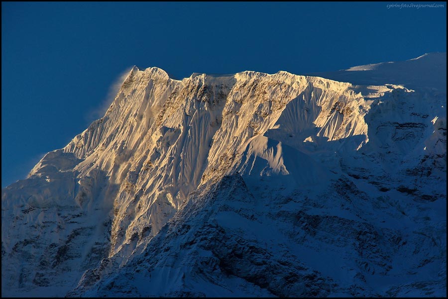 Кстати, на этом ночном фото можно видеть "кусочек" Аннапурны I, выглядывающей из-за Кхангсар-Канга (остроконечный пик справа).