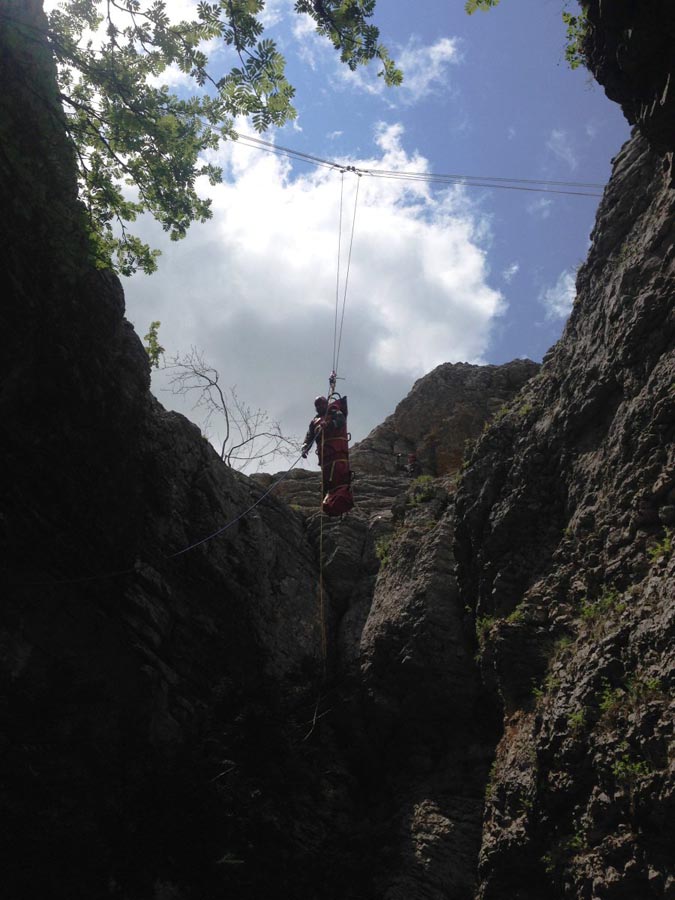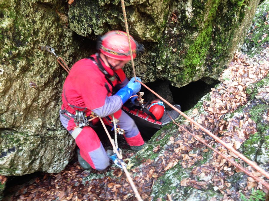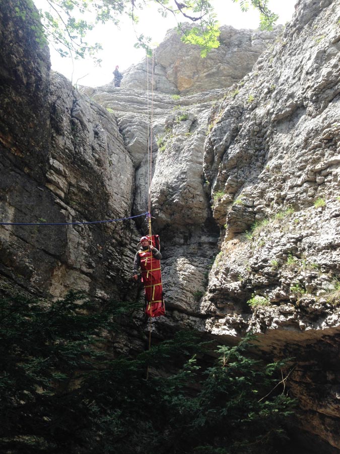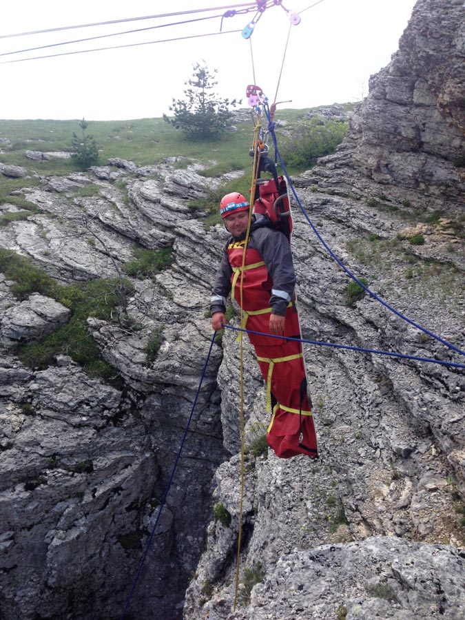 Отдельно хочу отметить удобство носилок Petzl Nest Stretcher, которые мы уже давно получили от компании «Альпиндустрия» и представительства компании Petzl в России в рамках проекта «Сделаем Крым безопасней», но до сих пор не использовали в пещерах. Если на скалах в моём личном рейтинге первое место держат носилки Kong Lecco, то в пещерах бесспорное лидерство за Petzl Nest. И не только благодаря пластиковой тыльной части, которая обеспечивает отличное проскальзывание носилок через узости пещерного рельефа.