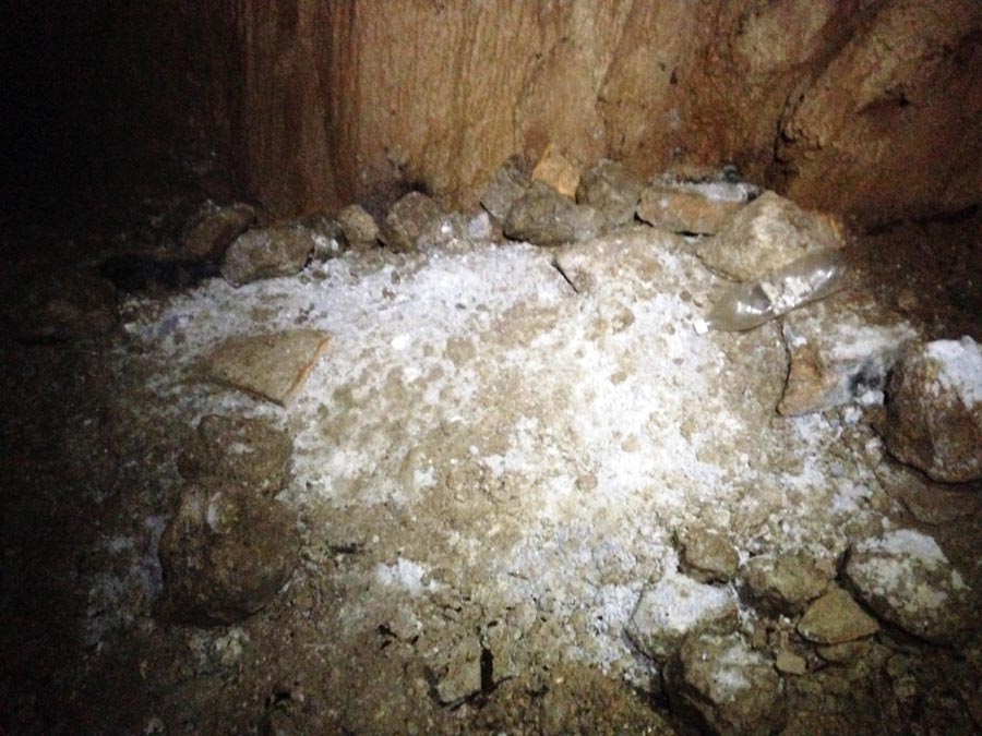 Карбидная свалка от горе-спелеологов в галерее на глубине 160 метров