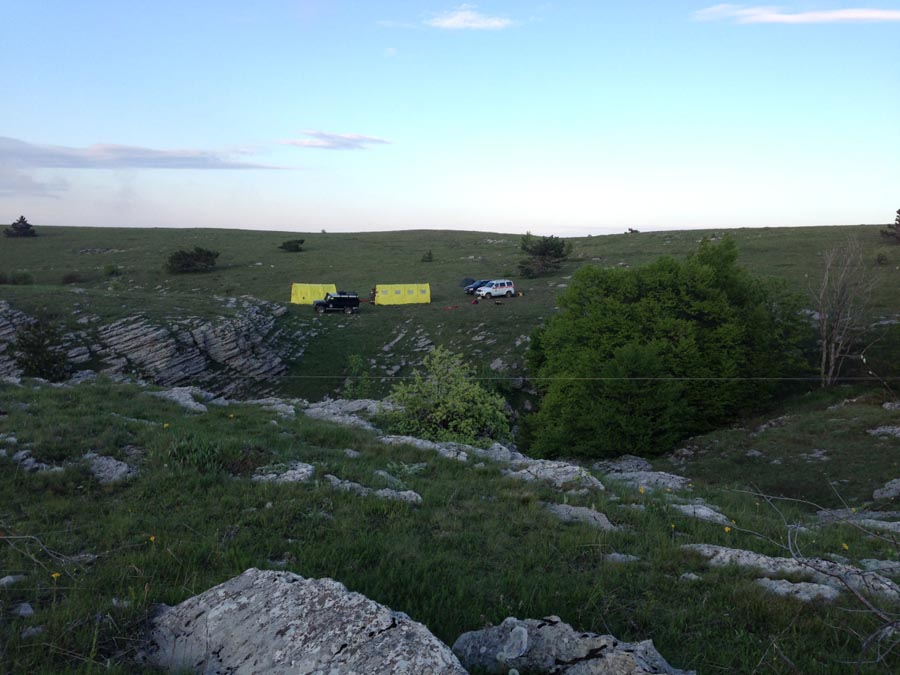 В качестве объекта для тренинга была выбрана шахта Каскадная на Ай-Петри, в которой я предварительно сделал разведку ещё в апреле. Хорошая, не грязная, в меру сухая, красивая, с удобным подъездом, но главное — идеальная по конфигурации пещера для тренировки и для организации учебно-методического процесса верёвочных спасработ.