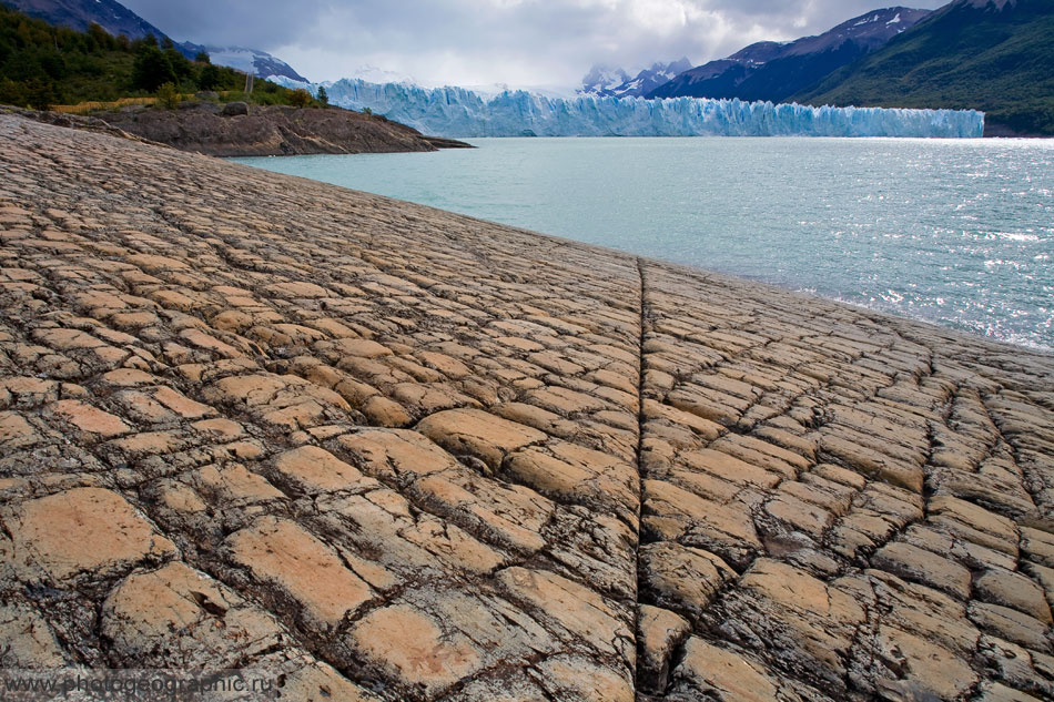 Западная часть озера Lago Argentino представляет собой разветвлённую сеть узких и длинных заливов, в один из которых и стекает ледник Перито Морено, перегородив его. Здесь и на последующем кадре вид к основанию залива, в противоположную от ледника сторону. Перито Морено, кстати, не единственный ледник, который стекает в западную часть озера. Но самый потрясающий.
