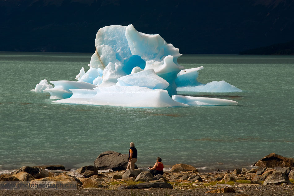 Это айсберг ушёл от ледника недалеко, всего километра на два. Но видел айсберги даже напротив Эль Калафатэ. И даже в самом дальнем от ледников конце озера. А это уже что-то ближе к сотне километров.