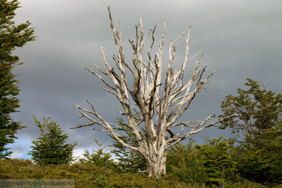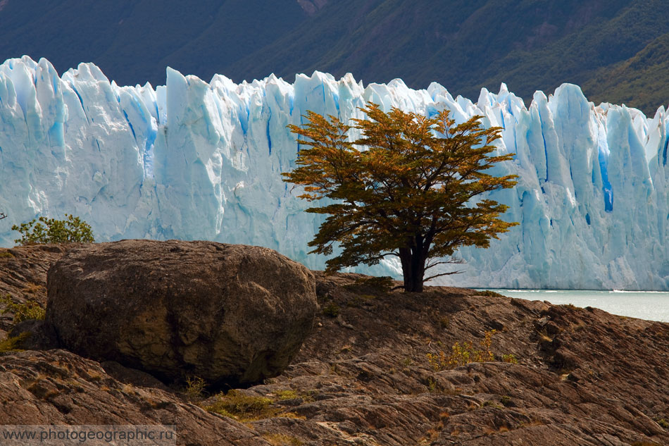 Это отдельно стоящее дерево так и просится в кадр на фоне ледника. Думаю, большинство это замечают и используют. Но снимать лучше с некоторого расстояния на длинном фокусе. Здесь у меня что-то ближе к 200мм.