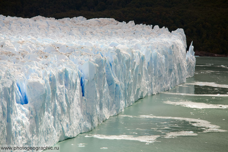 Поражает то, что передовая часть ледника всегда сохраняет форму вертикальной стены. При этом она постоянно осыпается и обновляется. Всё же это чудо природы.