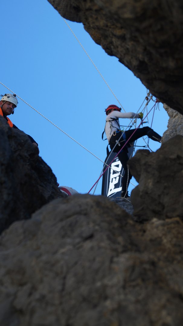 необходимо переместить через скальный участок, перемещение участников только лазанием в верх и