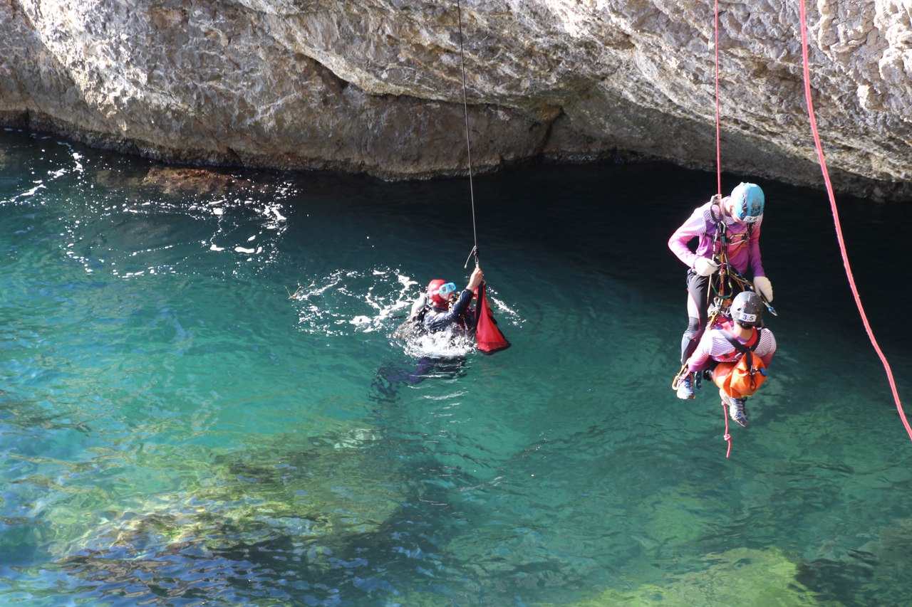 Часть этапа спасательных работ проходила, как и положено в пещере, упаковка «пострадавшего» и