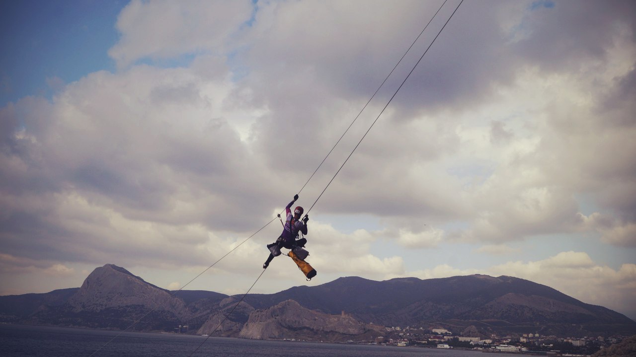 отсутствие точек опоры для рук и возможность падения сильно напрягала участников. Второму