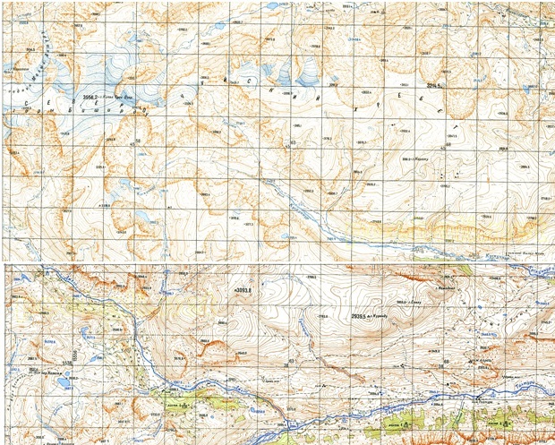 Ращупкин Алексей 1.6 Адрес хранения отчета Отчет хранится в библиотеке Свердловского областного туристско-спортивного союза и в библиотеке Новоуральского городского клуба туристов «КЕДР». 2.1 РАЙОН ПОХОДА 2.1.1 Общая смысловая идея похода Маршрут разрабатывался таким образом, что бы была возможность максимально изучить Северо- и Южно- Чуйские хребты, охватить как можно больше территории. 2.1.2 Варианты подъезда и отъезда Походы на Северо-Чуйском хребте обычно начинаются от Чуйского тракта. Есть 4 стандартных, проверенных опытом и временем пути подхода. Наиболее популярным у массового туриста в силу своей простоты был, да и, пожалуй, остаётся маршрут с началом в Чибите (либо, что равносильно, у нижнего чибитского моста через Чую, что находится километрах в 5 ниже села). Путь этот ведёт через плато перевала Ештык-Коль (Орой), более чем на километр поднятое над рекой, и через 45 километров приводит к Большому Шавлинскому озеру. Для тех же, кто хочет побыстрее попасть к подножию основных вершин и перевалов, наиболее удобным является заезд через ущелье Актру, где находится возрождённый альплагерь. Ущелье с возвышающимися правее него ледовыми массивами пиков Актру и Куркурек прекрасно видно из Курайской долины. Доехав по Чуйскому тракту до села Курай, надо свернуть с дороги и проехать ещё несколько километров вдоль Чуи до моста. Отсюда повернуть направо и ехать в направлении поросших лесом холмов, расположенных на правом берегу реки Актру. Дорога выходит к прогнившему бревенчатому настилу, ездить по которому уже нельзя, но на машине повышенной проходимости можно пересечь реку вброд и доехать прямо до домиков альплагеря. До ледников Актру отсюда уже рукой подать. Ещё один путь ведёт вверх вдоль реки Маашей (или Мажой). Этот левый приток Чуи стекает с одноимённого ледника, лежащего под стенами пиков Маашей и Карагем. Чтобы попасть к мосту через Чую, находящемуся вблизи устья Маашея, надо проехать мимо посёлка Акташ и в том месте, где Чуйский тракт снова выходит к реке, свернуть с него направо и проехать по покосам к началу прижима. Здесь начинается тропа, которая через 3 километра выводит к мосту, ниже которого Чуя устремляется в популярный среди туристов-водников Мажойский каньон. (Сюда можно попасть и непосредственно от села Чибит, пройдя или лучше проехав, если дорога не размыта, около 15 километров. Дорога эта начинается недалеко от подвесного моста и идёт по террасе правого берега Чуи высоко над каньоном). Крутой, но недолгий подъём по тракторной дороге выводит в широкую долину реки Маашей. Колея идёт ещё 4 километра до пересечения с другой дорогой, которая по моховым плато ведёт как налево, к реке Актру, так и направо - к Ештык-Колю. Далее вверх по весьма живописной долине ведёт хорошая и, за исключением небольшого подъёма на завал озера, ровная тропа. Ну а четвёртый вариант ведёт в долину реки Джело и, через тракторный перевал Карагем, в верховья реки Иолдо-Айры, вдоль которой спускаются на Карагемскую поляну. Этот путь предпочтителен в том случае, когда запланирован маршрут, включающий в себя прохождение перевалов как на Северо-, так и на Южно-Чуйском хребтах. Заметим, что из-за большего, чем на Южно-Чуйском хребте, количества осадков общее отступление ледников и таяние снежников хоть и увеличило камнепадную опасность перевалов, но не в та