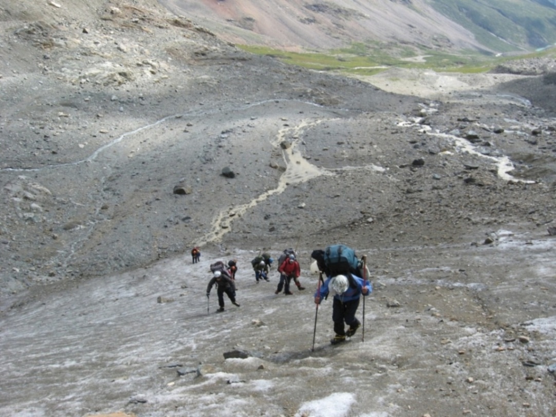 Фото 14 – Начало подъема на перевал Кзылташ по леднику М.Актру