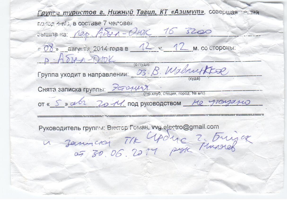Отчет пешего туристского похода 5 к.с. по Ц.Алтаю, совершенном с 28.07.2014 по 12.08.2014 г.