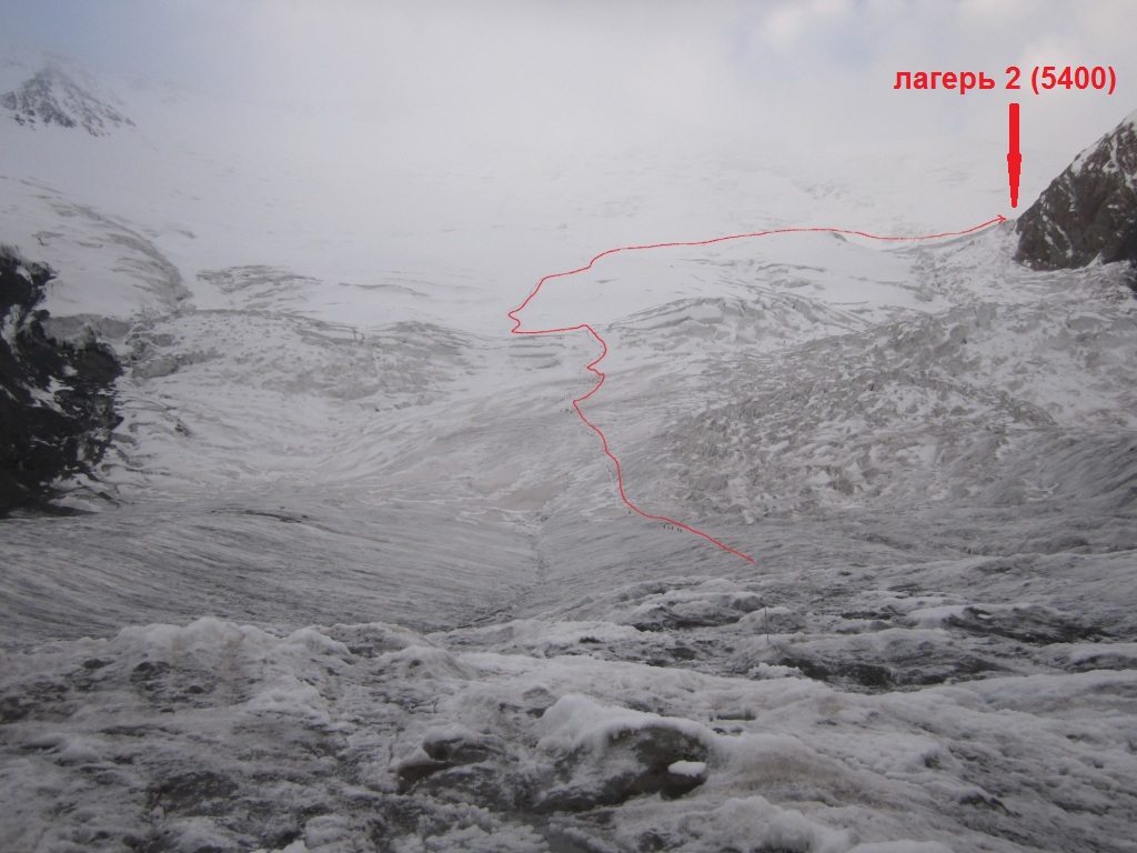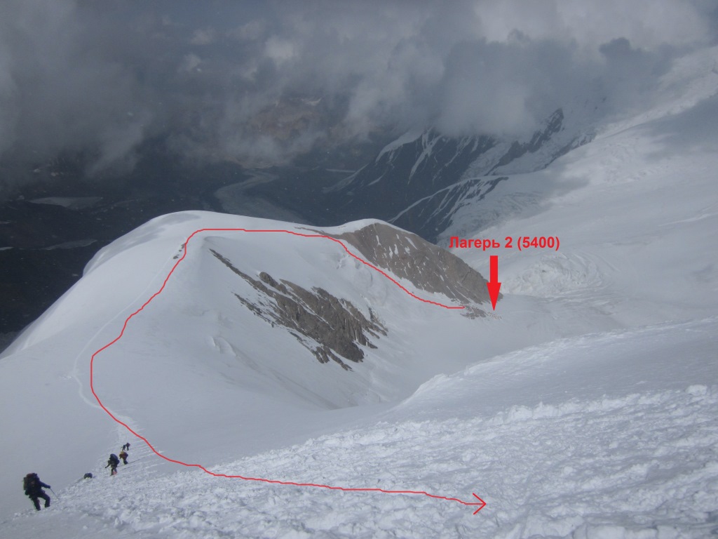 фото 11. Путь подъема от лагеря 1 (4415) до лагеря 2 (5400)