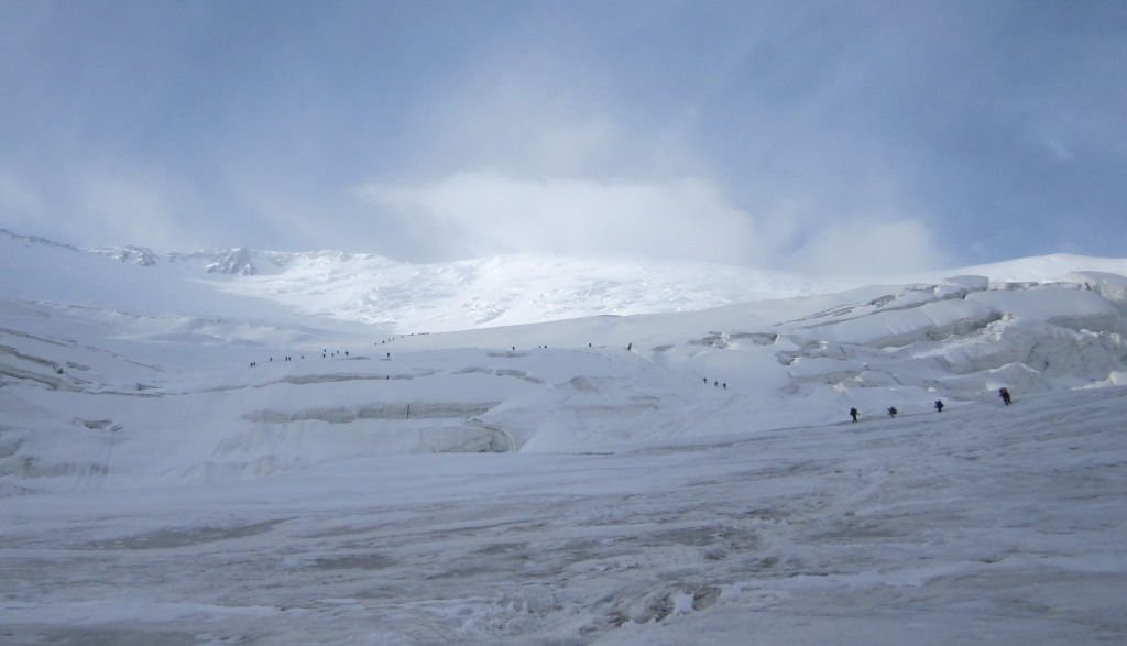 фото 14. Траверс снежно-ледового плато на запад к лагерю 2