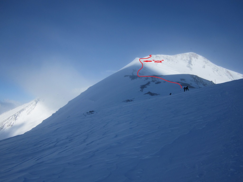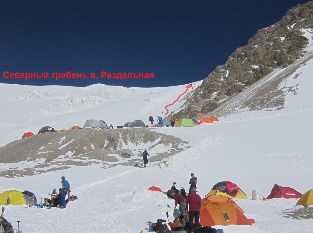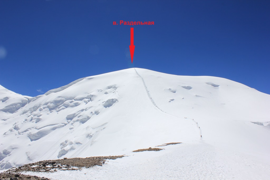 фото 17. Путь подъема от лагеря 2 на в. Раздельная