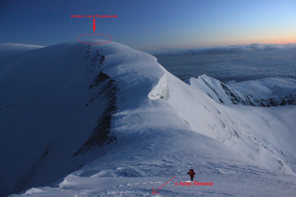 фото 20. Начало подъема на пик Ленина от в. Раздельной
