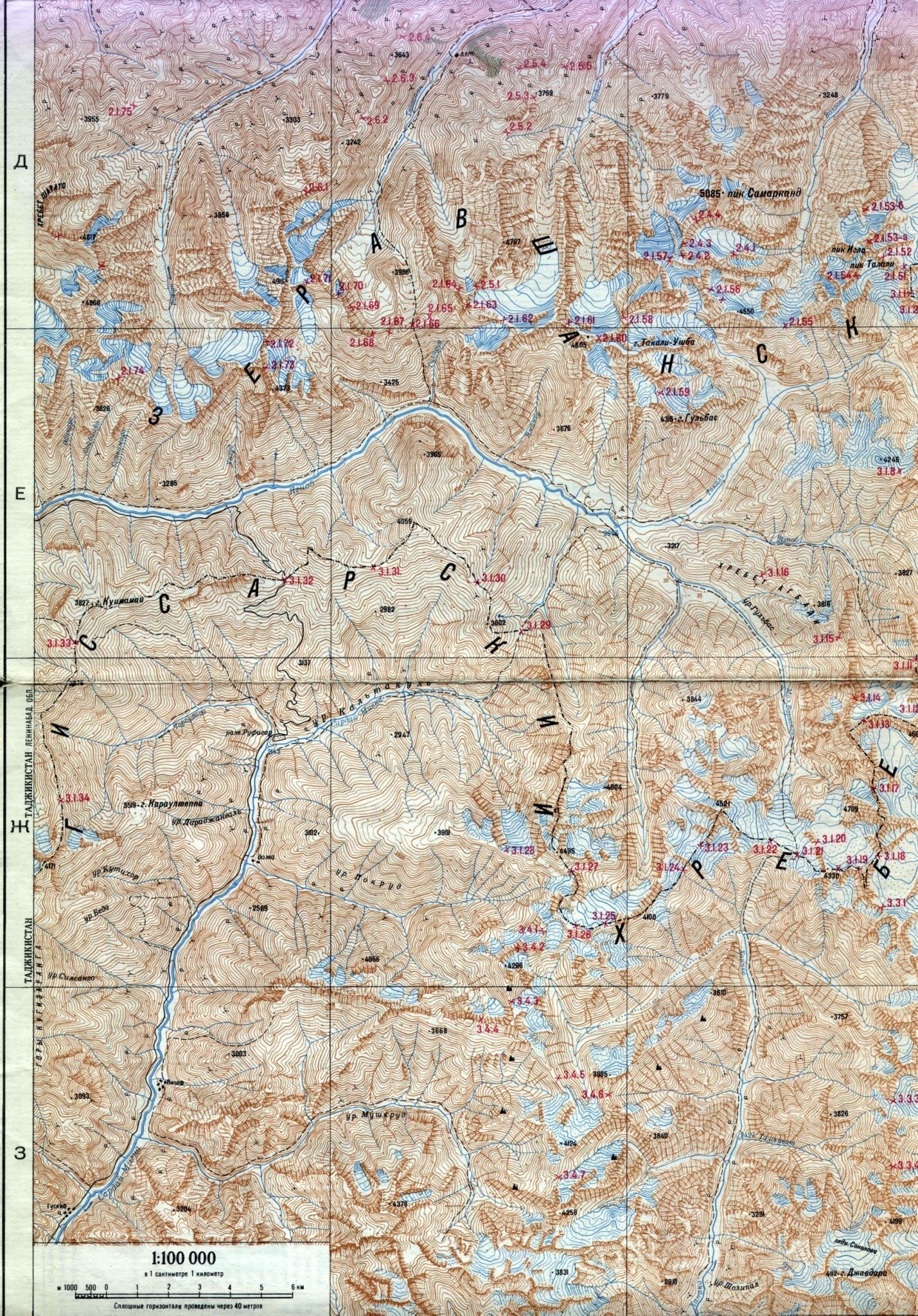 Примечания: Здесь и далее по отчету: (Карта-схема 1, 2, 3, 4) – соответствующие фрагменты топографической цветной карты Зеравшанского хребта 1:100000 (см. п. 7.7.Картографический материал). Сведения об участниках