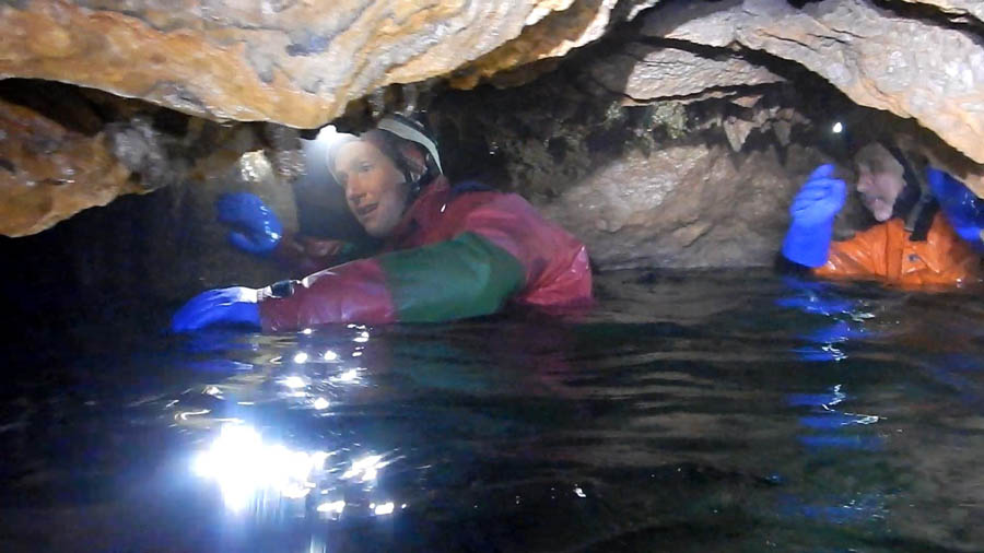 Акимов подтверждает гипотезу: «Мы думаем в этой колбе продолжение пещеры, потому что туда течет вода. Колба большая. Ширина ее метр, высота – полтора. И видно, что поток воды идет по этой галерейке. В этом месте пещеры нет тяги, и мы испытывали недостаток кислорода, и в конце своего пребывания под землей начали задыхаться. Появилась сильная отдышка. Поднимаешься на десять метров выше, все проходит. Надо дождаться такого сезона, когда будет сильно жарко и не будет воды, либо ехать, когда будет холодно. Хотя бы пять-десять градусов мороза, без таяния снега. Вода остановится, и откроется сифон. Наш нынешний выход был удачным. Стало понятно, куда нужно двигаться. Мы знаем, что надо попасть в колбу, расширить проход, посмотреть, что там. После того, как мы вышли из пещеры, наши силы оказались на нуле. Но завтра планируем идти в пещеру. Она продолжается. Сейчас преградой является узость. Но в любой пещере есть узости, которые сложно преодолеть. Завтра мы будем пытаться найти проход».