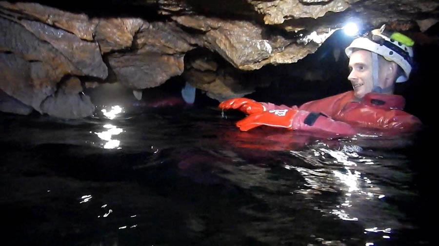 Исследователь пещеры Слияния Сергей Ляховец делится свежими впечатлениями: «Случайно начал копать. Было очень узко и ноги некуда было поставить. Я копал, копал, и вода стала понемножку уходить. Там может быть продолжение пещеры».