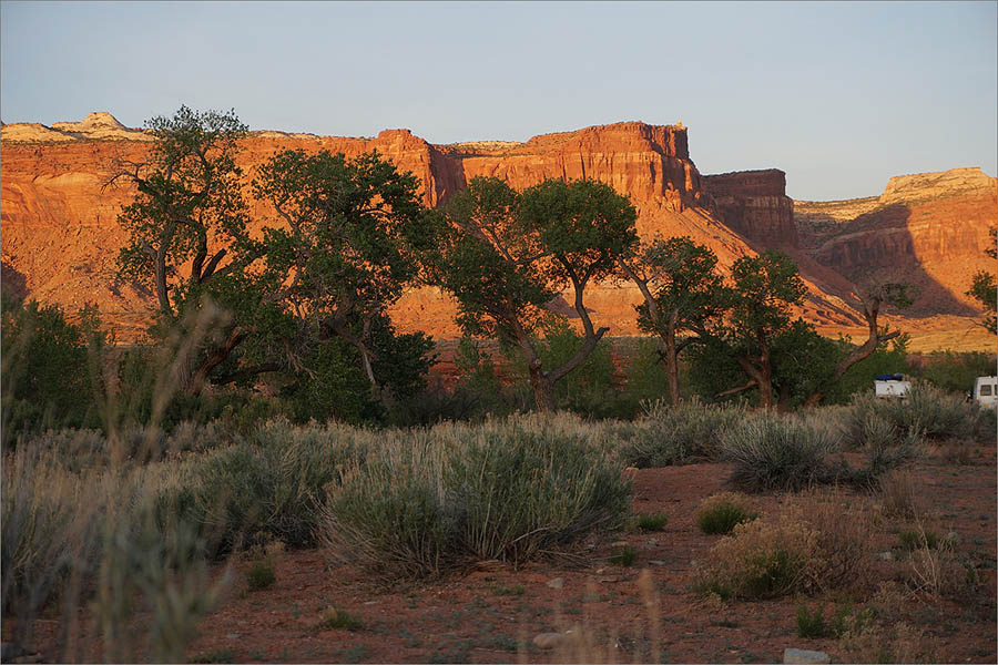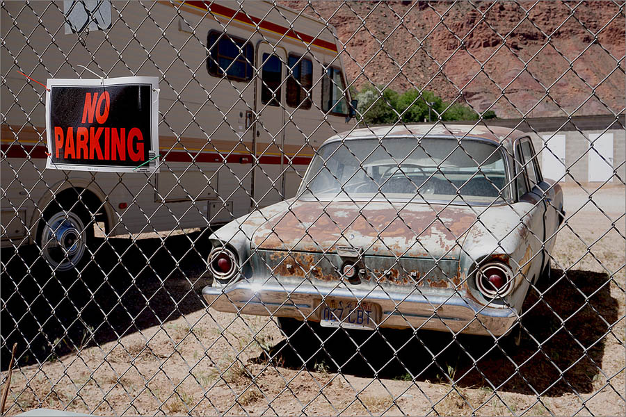Вечерело, проезжали Моаб. Небольшой такой городок. Но именно сегодня там парад машин. И поэтому пробка, едут с черепашьей скоростью, гудят, ревут моторы, весело.